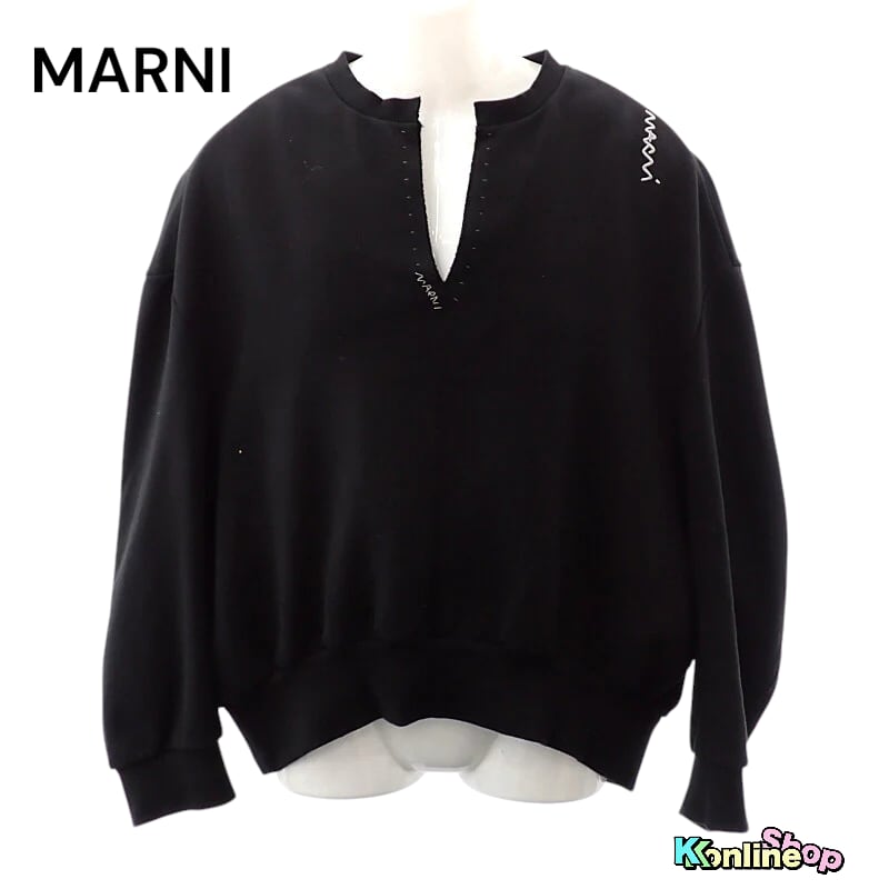 【MARNI】マルニ MARNI メンディング刺繍ロゴ Vネック 38 FLJE0218S1 スウェット コットン ブラック レディース【ソノタコモノ】